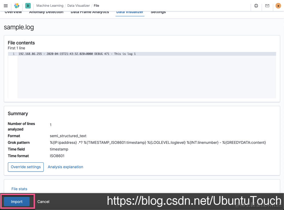 接下来的工作我们来使用 Kibana 来导入我们的日志文件 sample.log: