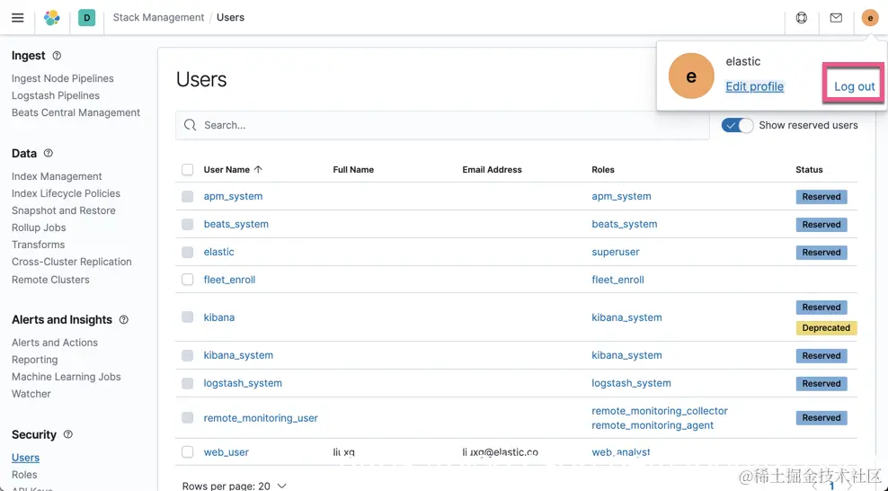 上面我们已经创建了不同的 Space。我们甚至可以让不同的用户来绑定这些被创建的 Space,从而使得它们在登录后具有不同的界面。为了能够创建不同的用户,我们需要启动 Elasticsearch 的安全。请阅读我之前的文章 “Elasticsearch:用户安全设置” 。这里就不再累述了。