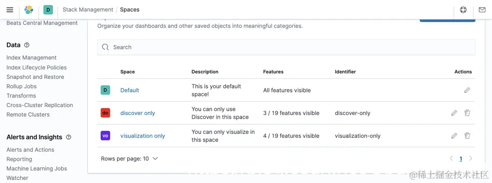 我们添加刚才已经创建好的 visualization_only 及 discover_only 两个 space: