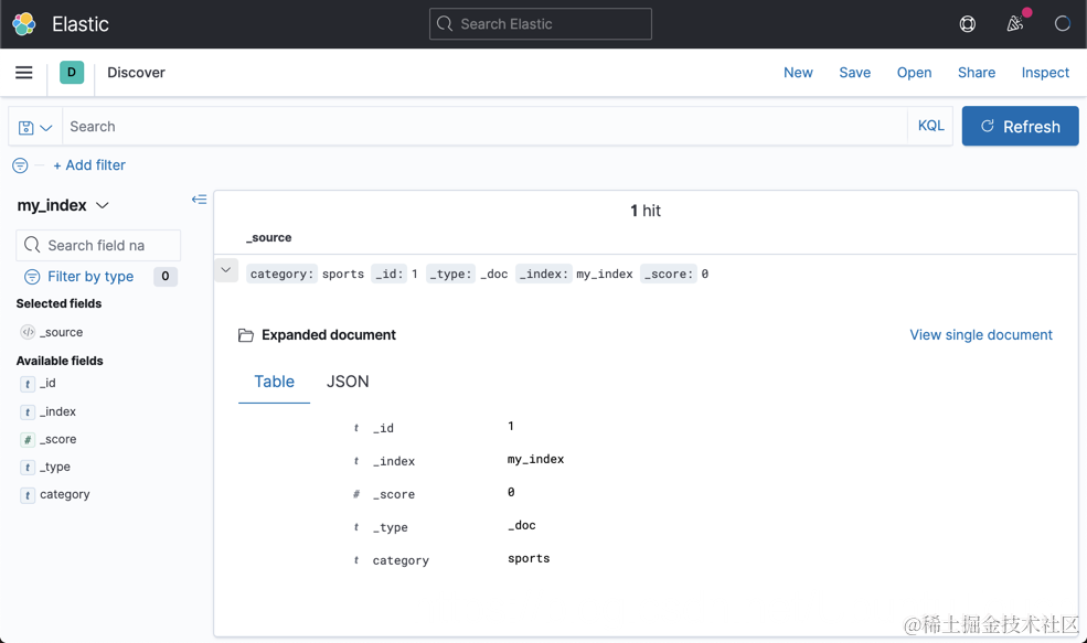 在上面,我们看到了 my_index 的唯一文档。我们尝试如下的几个搜索: