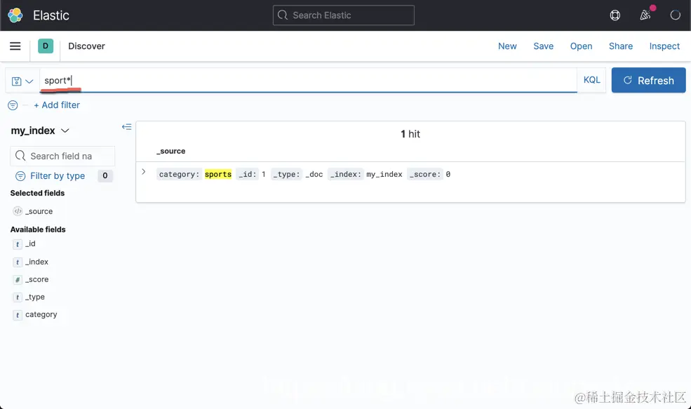 我们接着为 my_index 创建 index pattern,并在 Discover 中进行搜索: