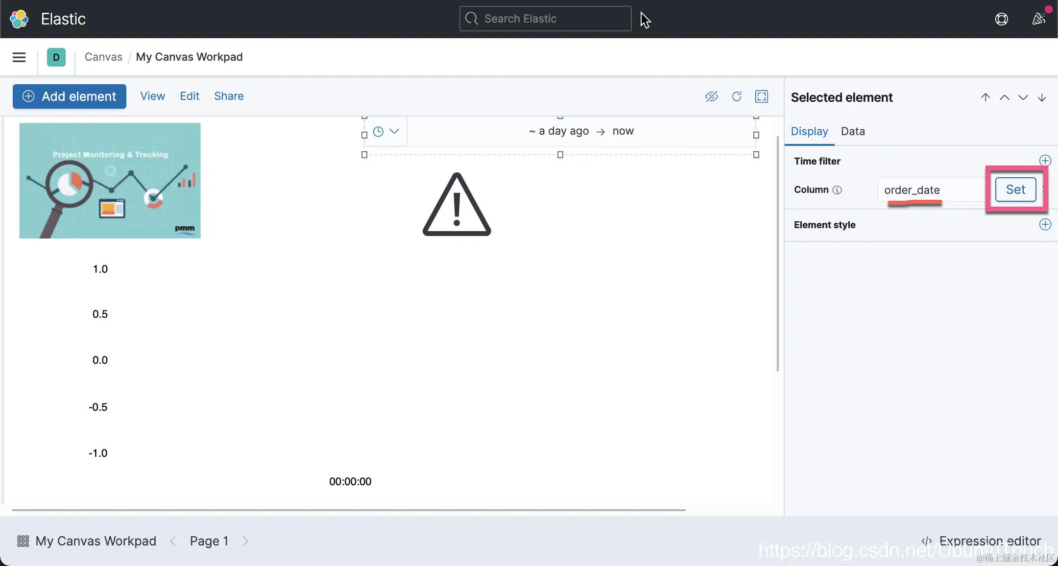 我们把 time filter 放置于我们喜欢的位置,然后点击 Display。在 Column 的位置输入 order_date。最后点击 Set 按钮: