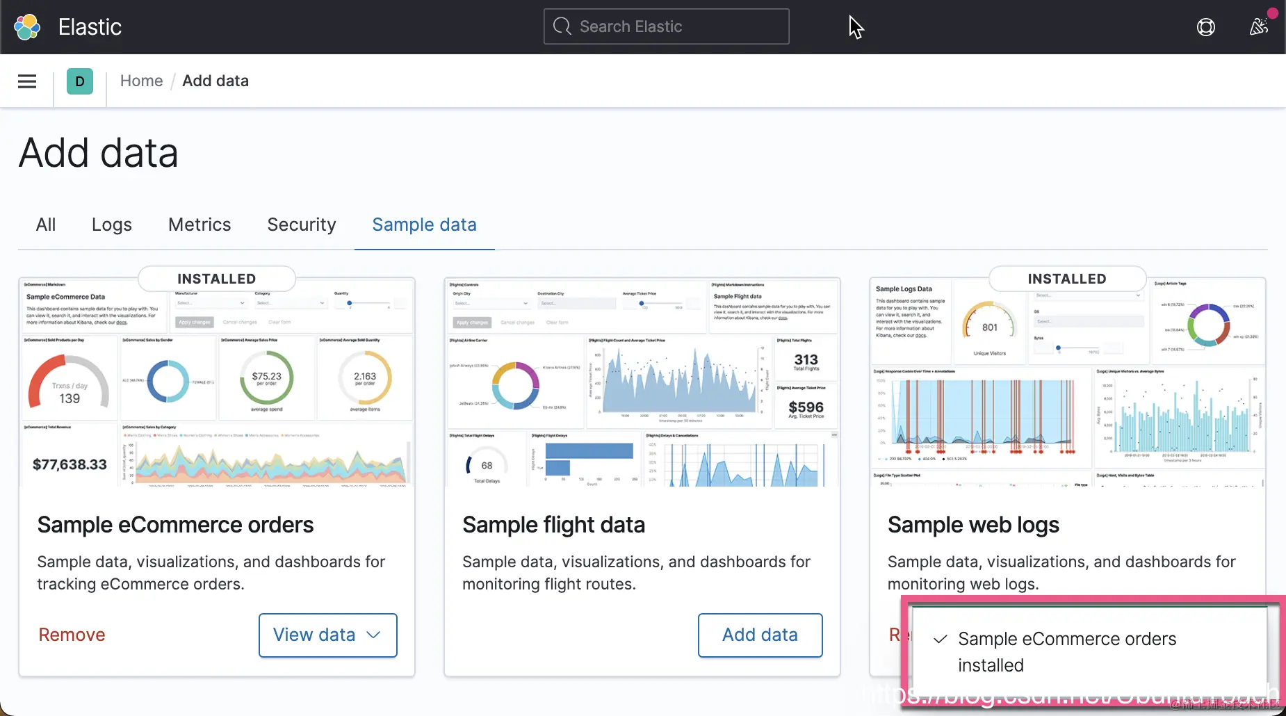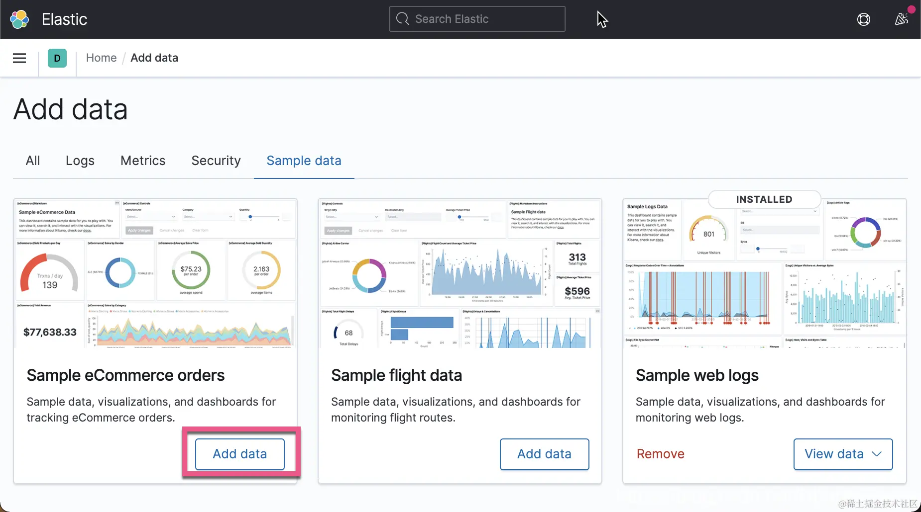 在今天的练习中,我将使用 Kibana 自带的数据来进行展示。我将使用 eCommerce 索引来进行展示。接着我们将创建一个工作台(Workpad)来监视销售的情况。在今天的展示中,我将以 Elastic Stack 7.10 来进行展示。