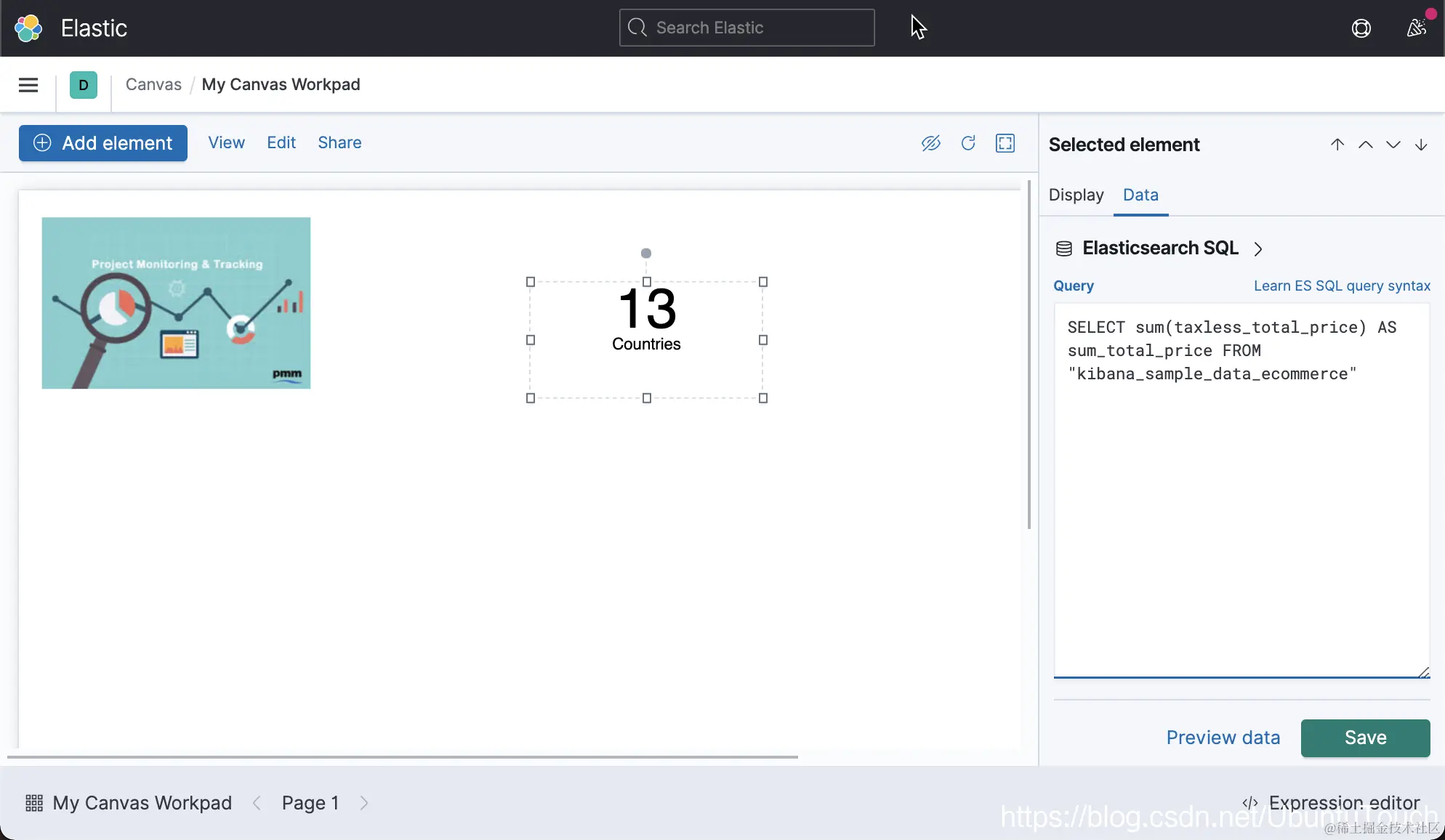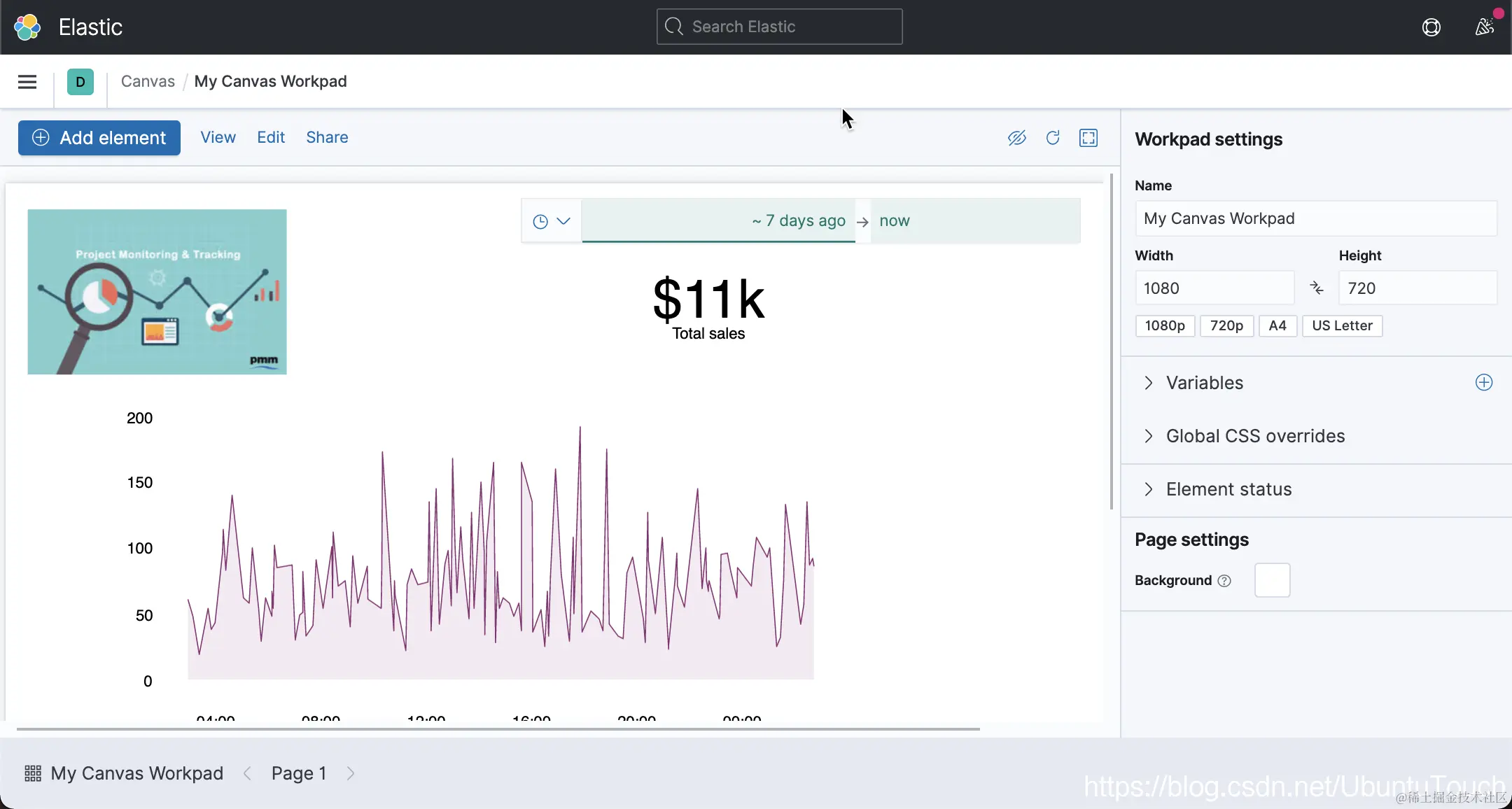 Canvas 是位于 Kibana 中的数据可视化和演示工具。 使用 Canvas,你可以直接从 Elasticsearch 提取实时数据,并将数据与颜色,图像,文本和你的想象力结合起来,以创建动态的,多页面,像素完美的显示。 如果你有点创意,技术性以及好奇心,那么 Canvas 就是你的理想选择。