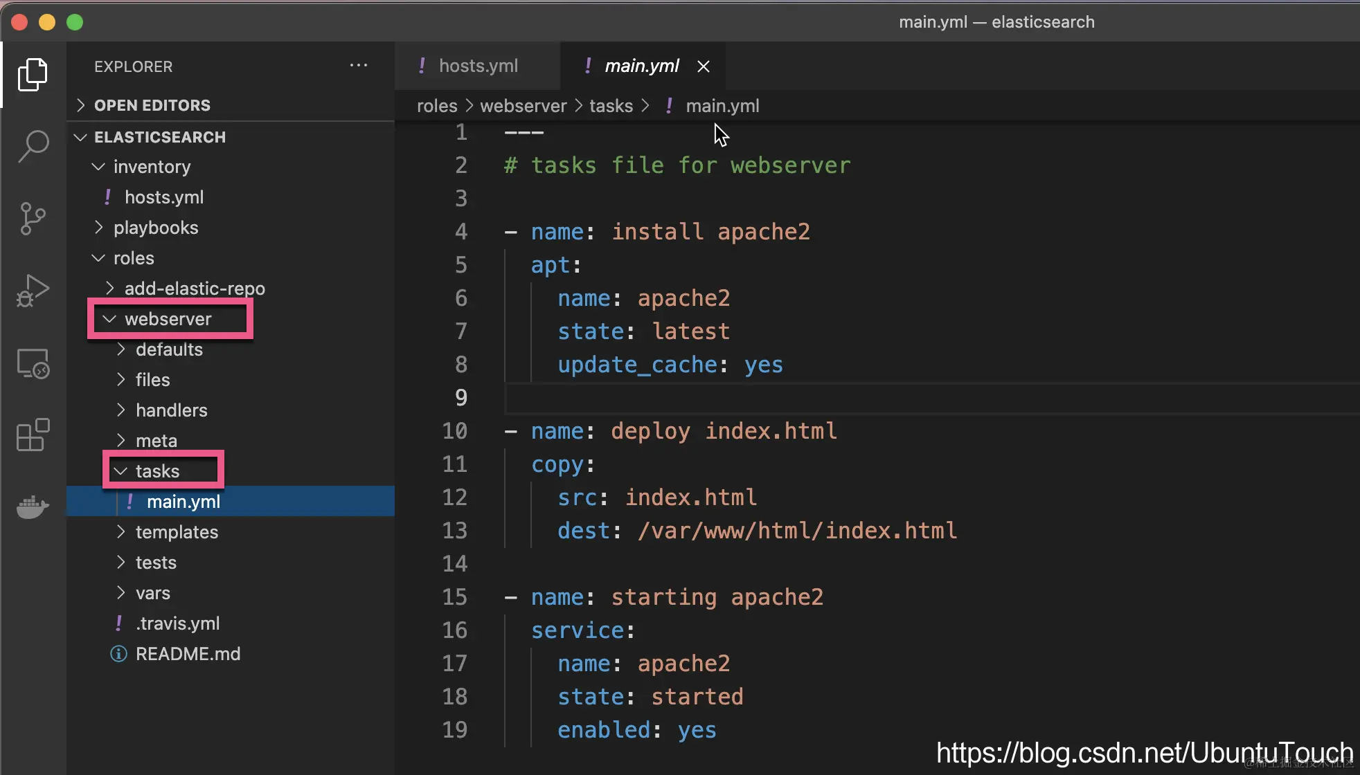 接下来,我们在 playbooks 目录下创建一个叫做 deploy-webserver.yml 的文件: