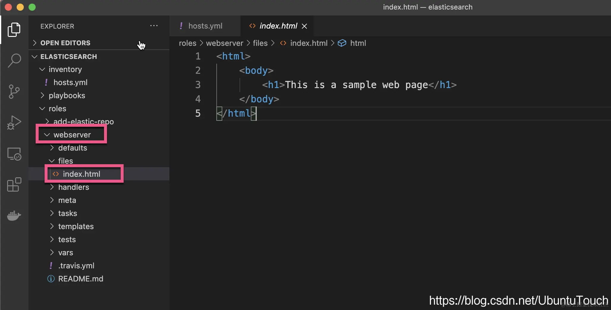 这样在 roles 目录下就生产了一个叫做 webserver 的子目录: