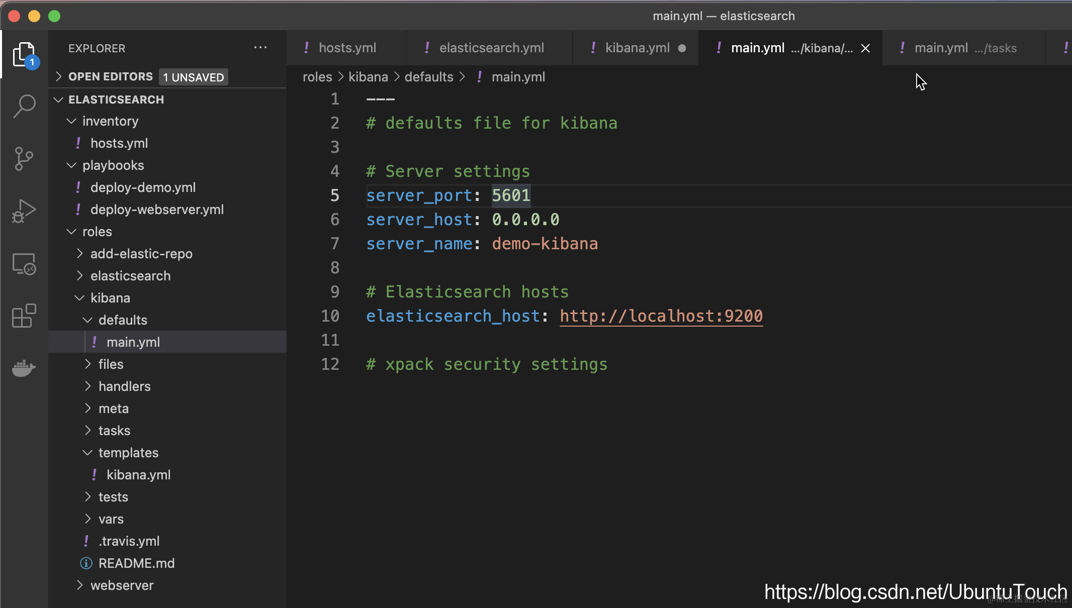 显然在上面的配置中,有很多都是固定的值。我们可以把我们需要配置的项挑出来,并在 defaults/main.yml 中做相应的变量定义: