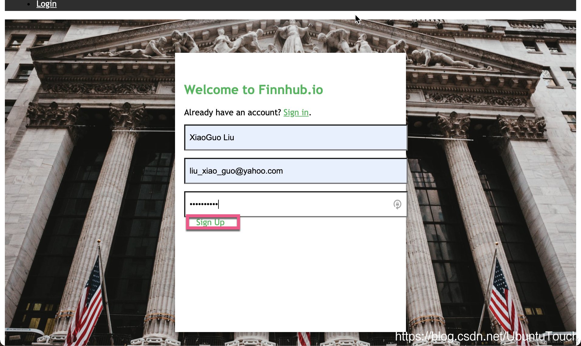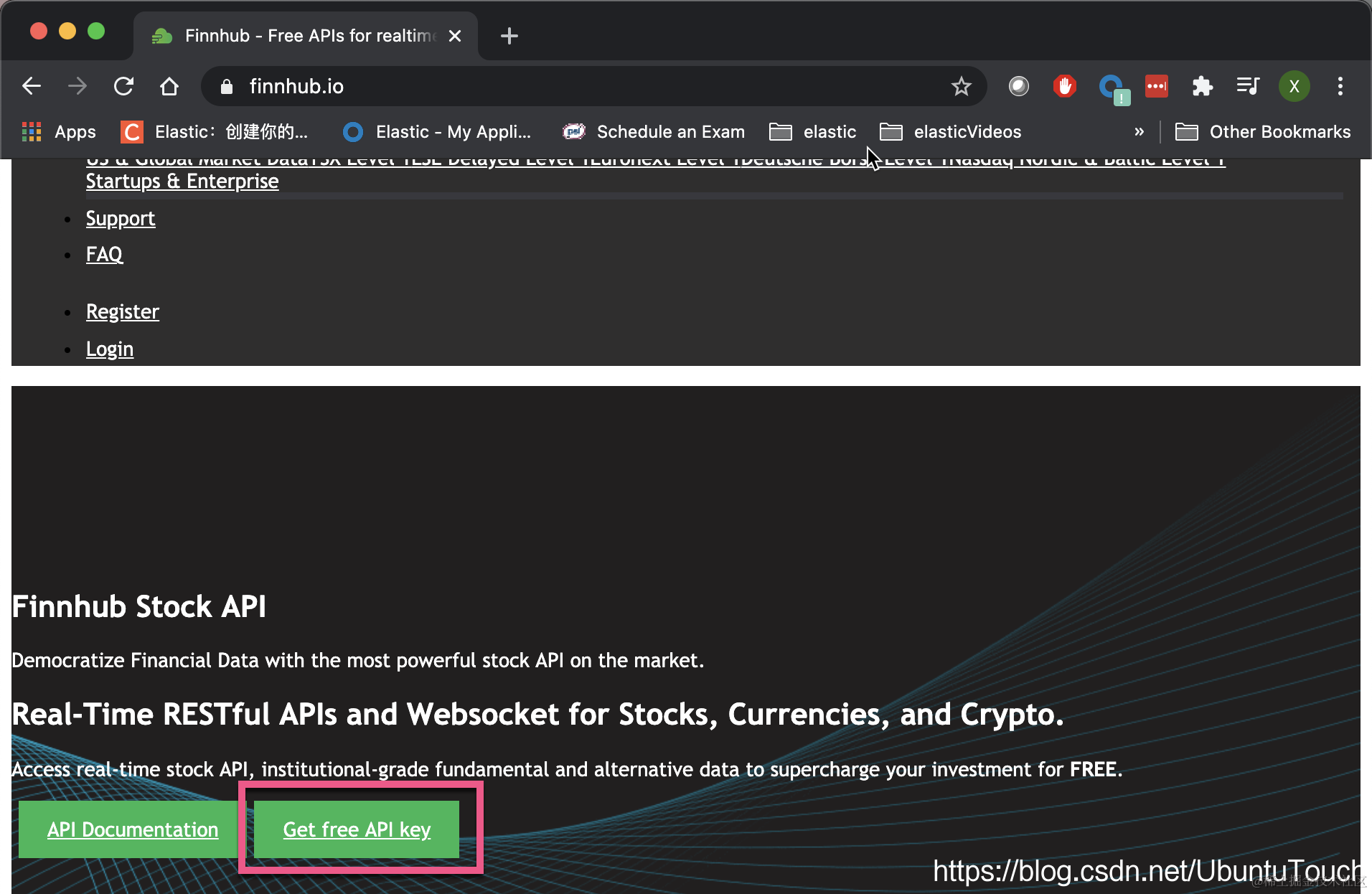 在今天的练习中,我将使用 finnhub.io/ 网站提供的 REST API 接口来进行展示。我们必须申请 API key 以得到数据: