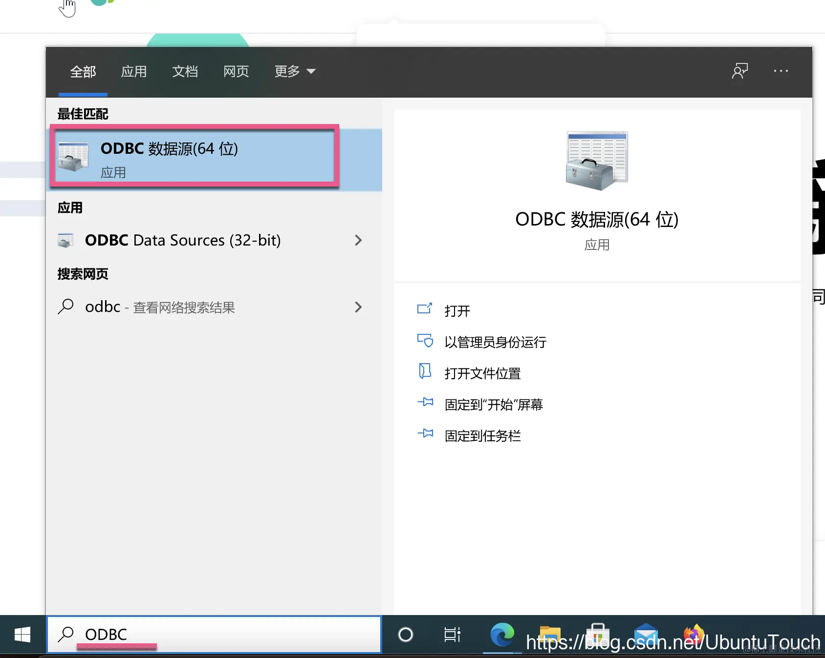 我们搜索 ODBC,并点击 “ODBC 数据源(64位)”: