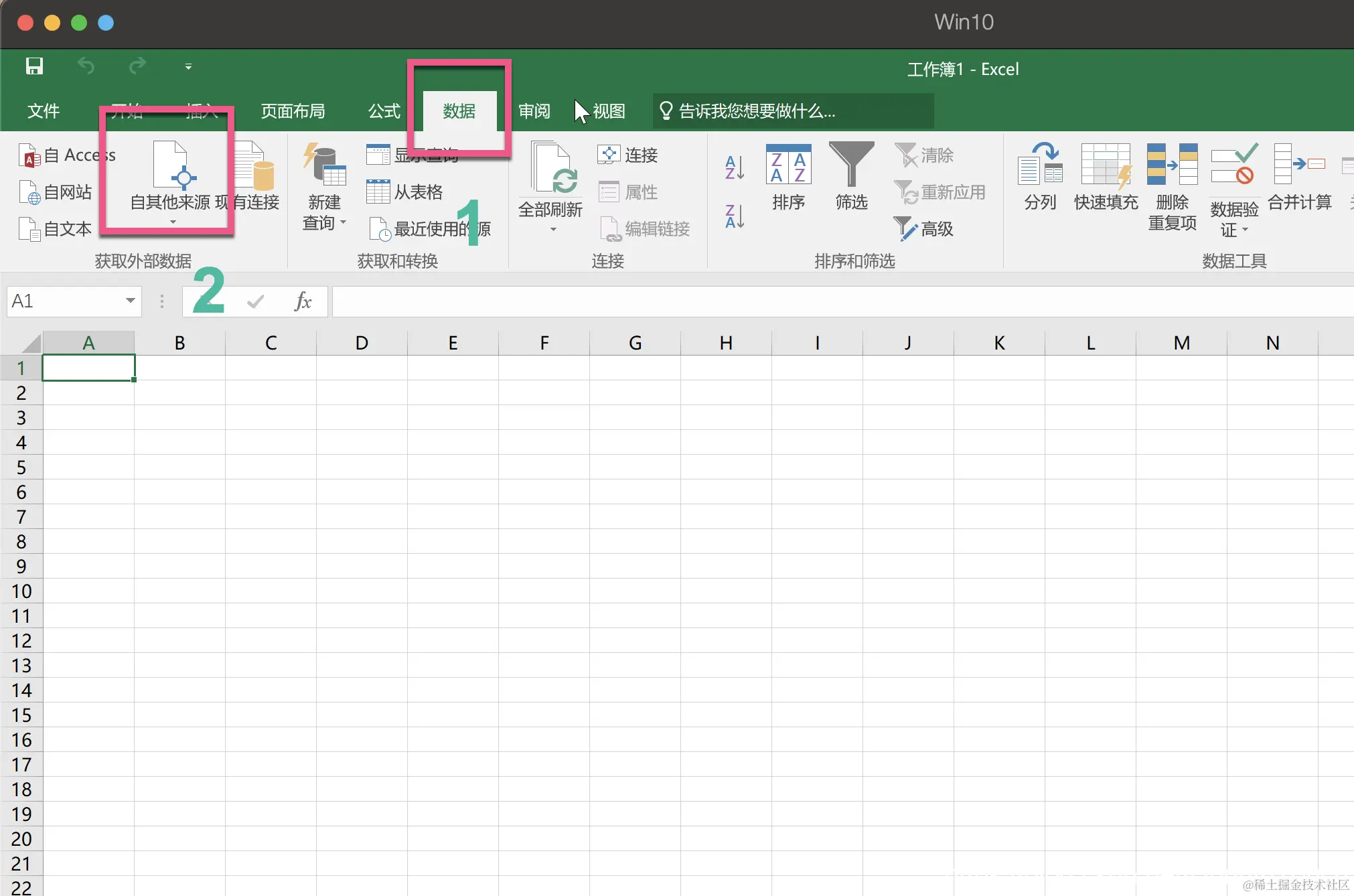 我们接下来从 Elasticsearch 导入数据到 Excel 中来。我们首先打开 Excel: