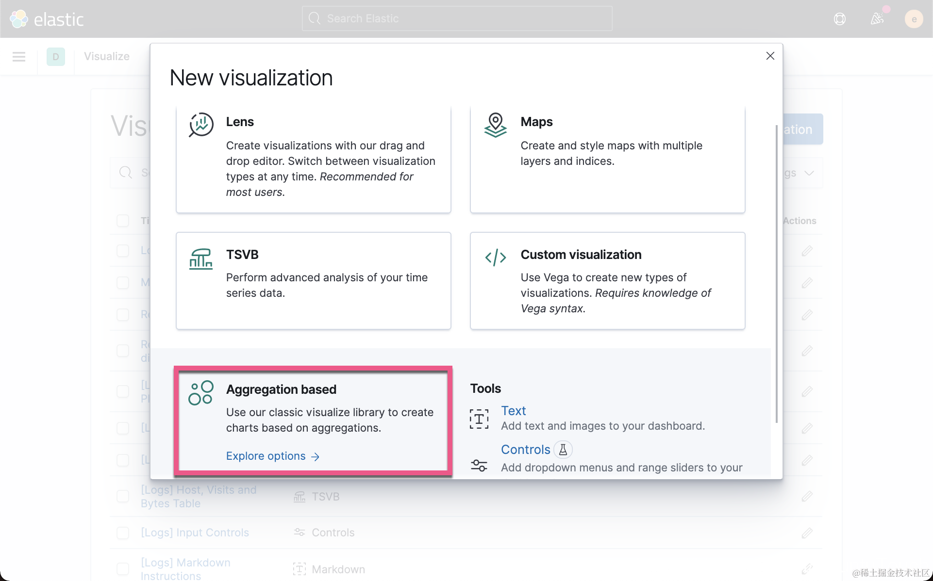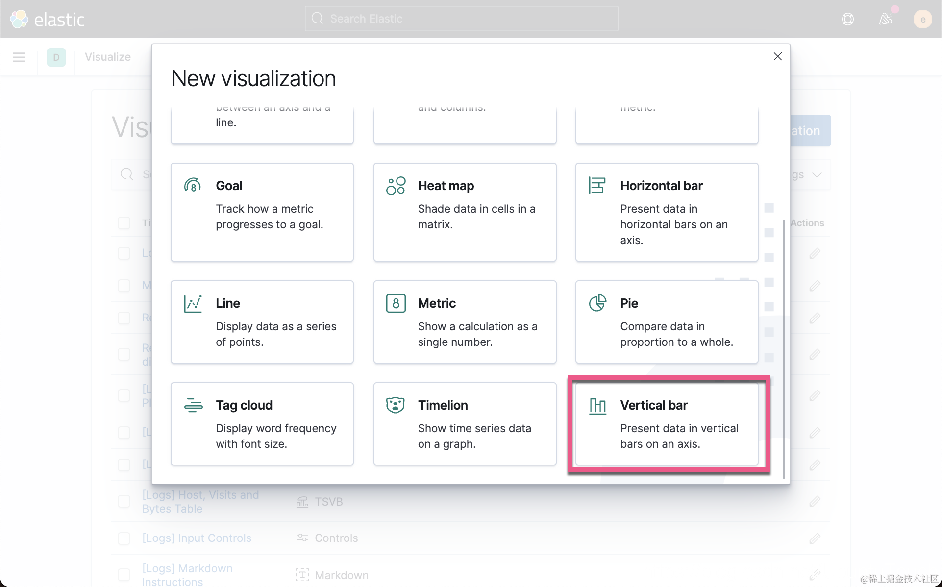 保存当前的 Dashboard。当我们点击可视化的空白部分时,我们可以看到一个菜单: