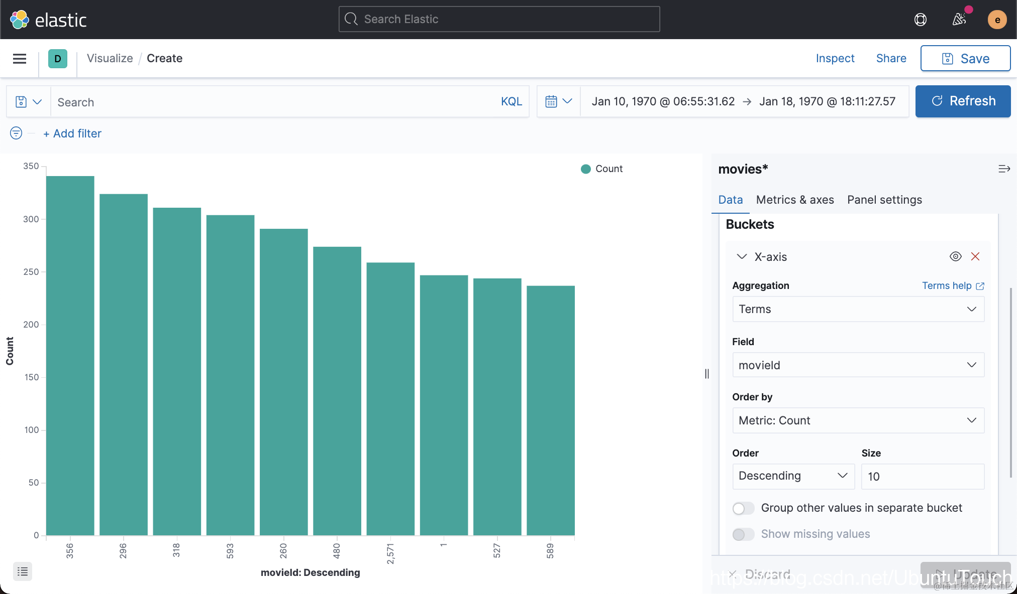 X 轴上是 movieid,在 Y 轴上显示的是 数量。