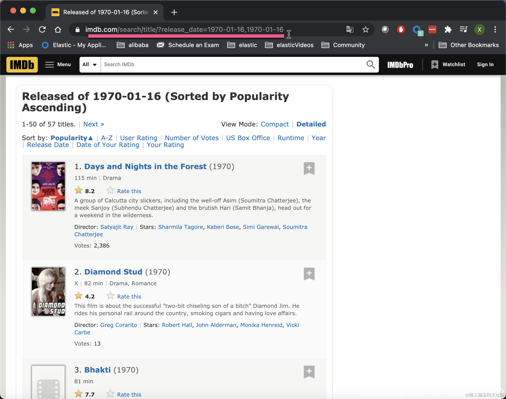从上面我们可以看到在 IMDB 的页面上能找到相应的查询结果。在地址栏中,我们可以看到显示的时间范围。