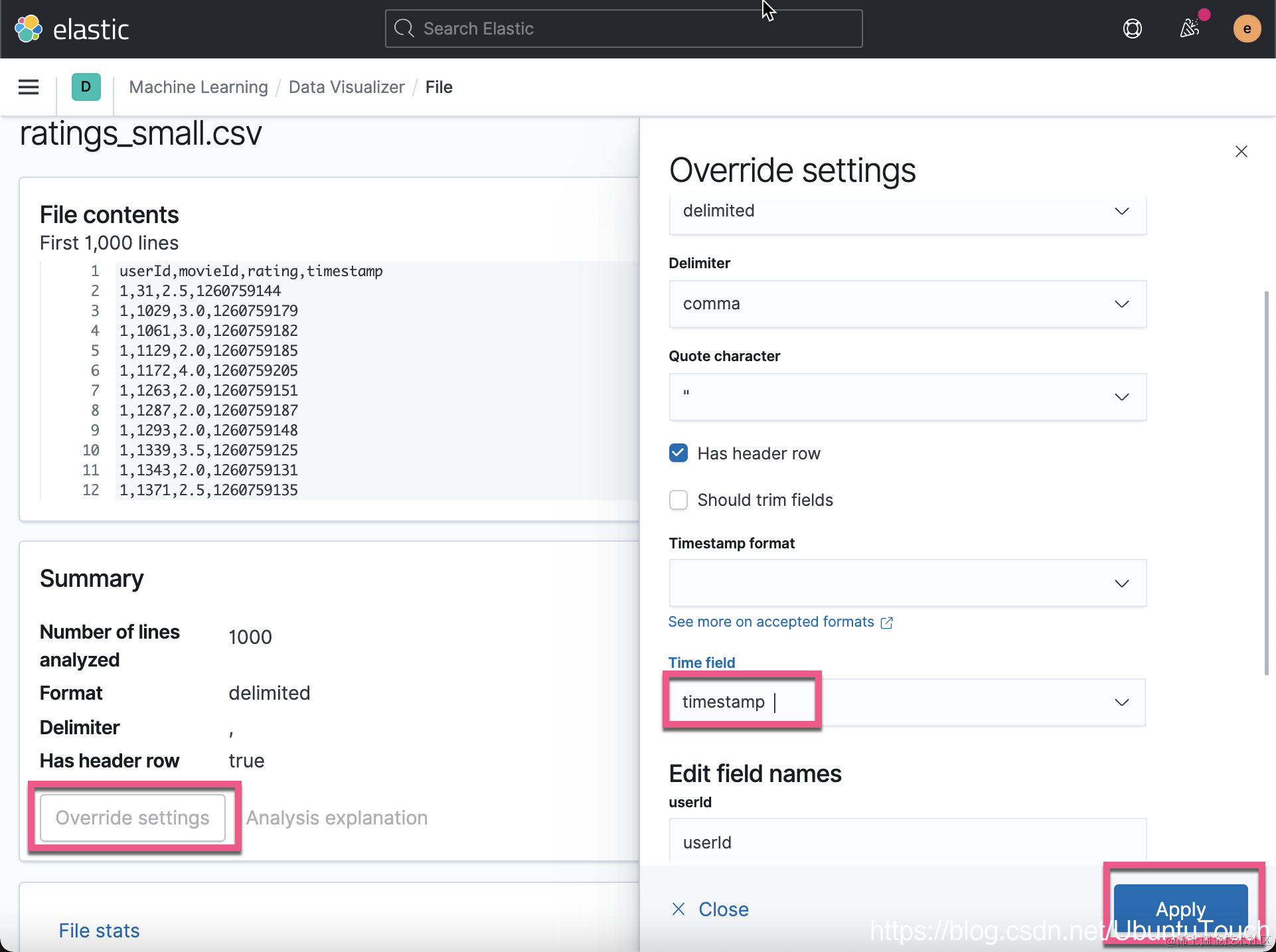 我们选择刚才已经下载的 ratings_small.csv 文件。
