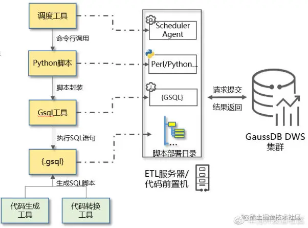 对于 GaussDB(DWS)而言,大多数场合下推荐采用 MPPDB 方案。实现这种方案实际上要实现 ETL SQL 模板的封装,把 ETL 开发过程与外部 ETL 调度系统的结合进行分层处理。通过模板方式实现与调度软件,和操作系统的接口封装,把 SQL 实现业务的模块封装在 GSQL 工具中,开放给业务人员和开发人员,令其聚焦在业务实现本身,而不用在意外部环境对于 ETL 过程操作的影响。