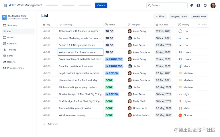 这就是我们打造 Jira Work Management 的原因,这是一种新的工作方式,让整个企业的知识型员工可以根据自己的喜好来规划和跟踪工作,而不需要替换掉他们已经熟悉的工具,例如电子表格,日历,表单和时间表。更好的是,借助 Jira Work Management,这些团队现在可以与他们的软件研发同事使用相同的语言,从而在整个组织中开启敏捷协作。