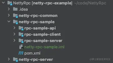 本示例提供了两个接口:HelloService 和 HiService,里面分别有一个接口方法,客户端仅需引用 rpc-sample-api,只知道接口定义,并不知道里面的具体实现。