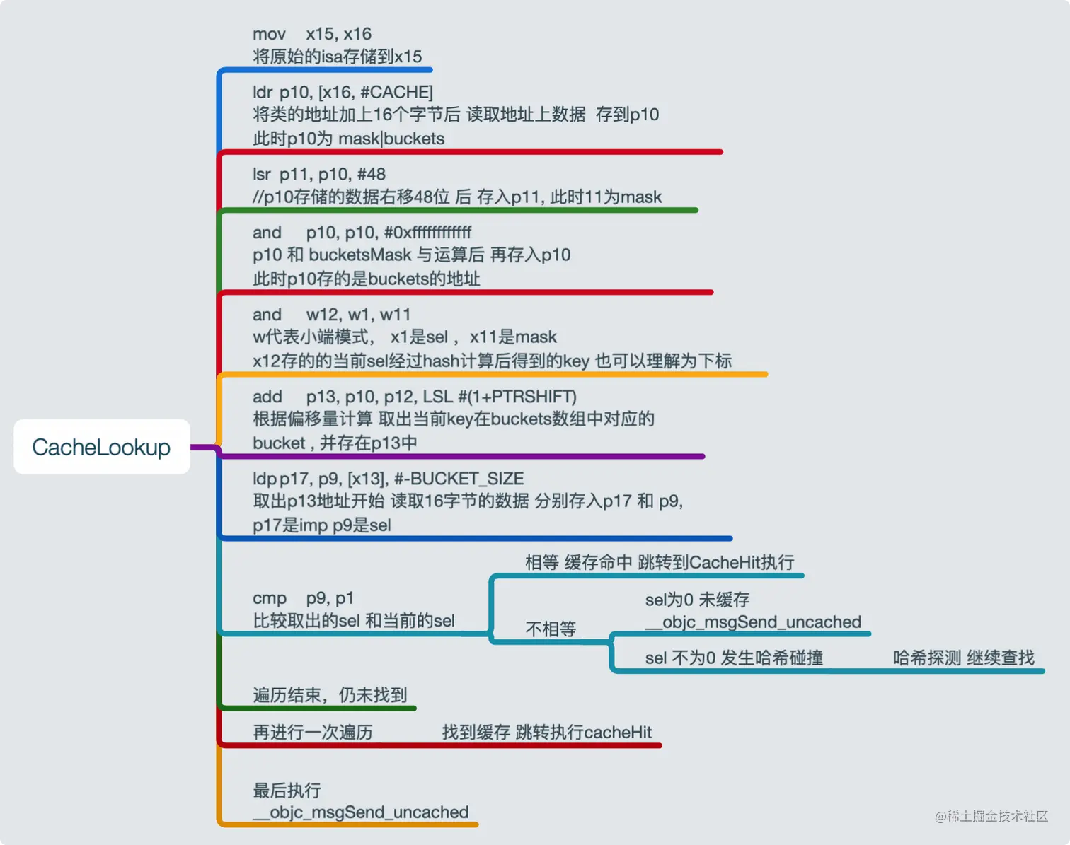 当CacheLookup准备执行时,p1 = sel, p13 = isa,p16 = class