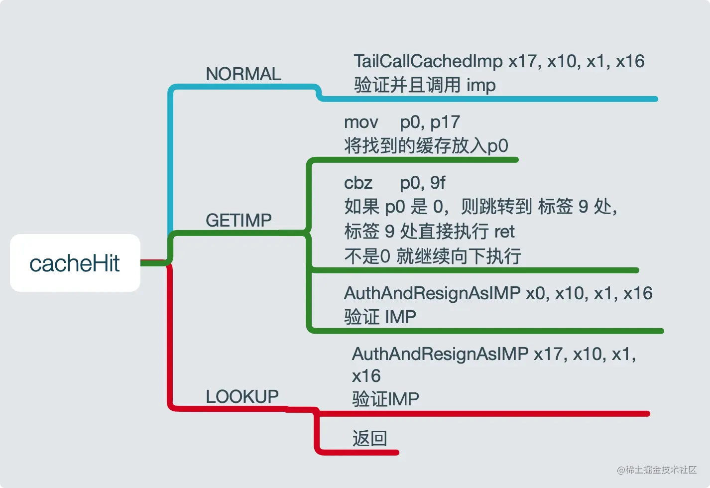 当执行结束时,如果从缓存中找到对应的IMP,x16 = class, x17 = IMP。如果没有找到,x15 = class
