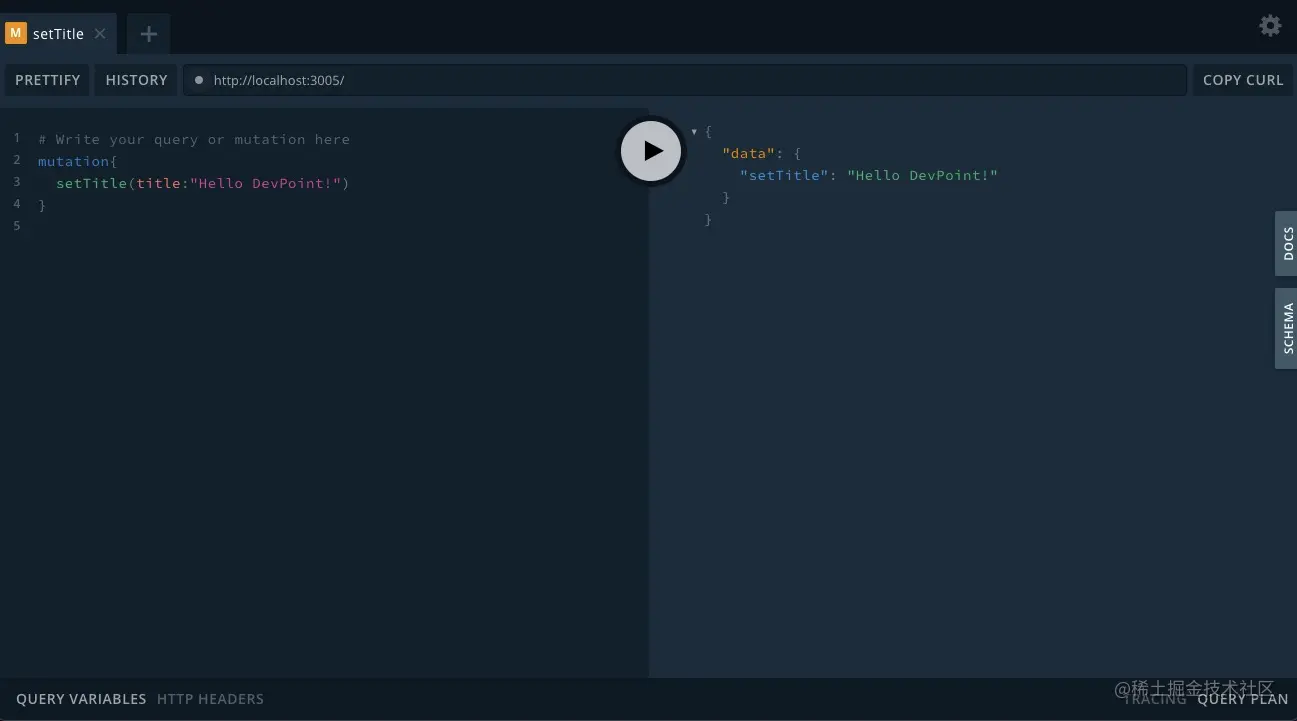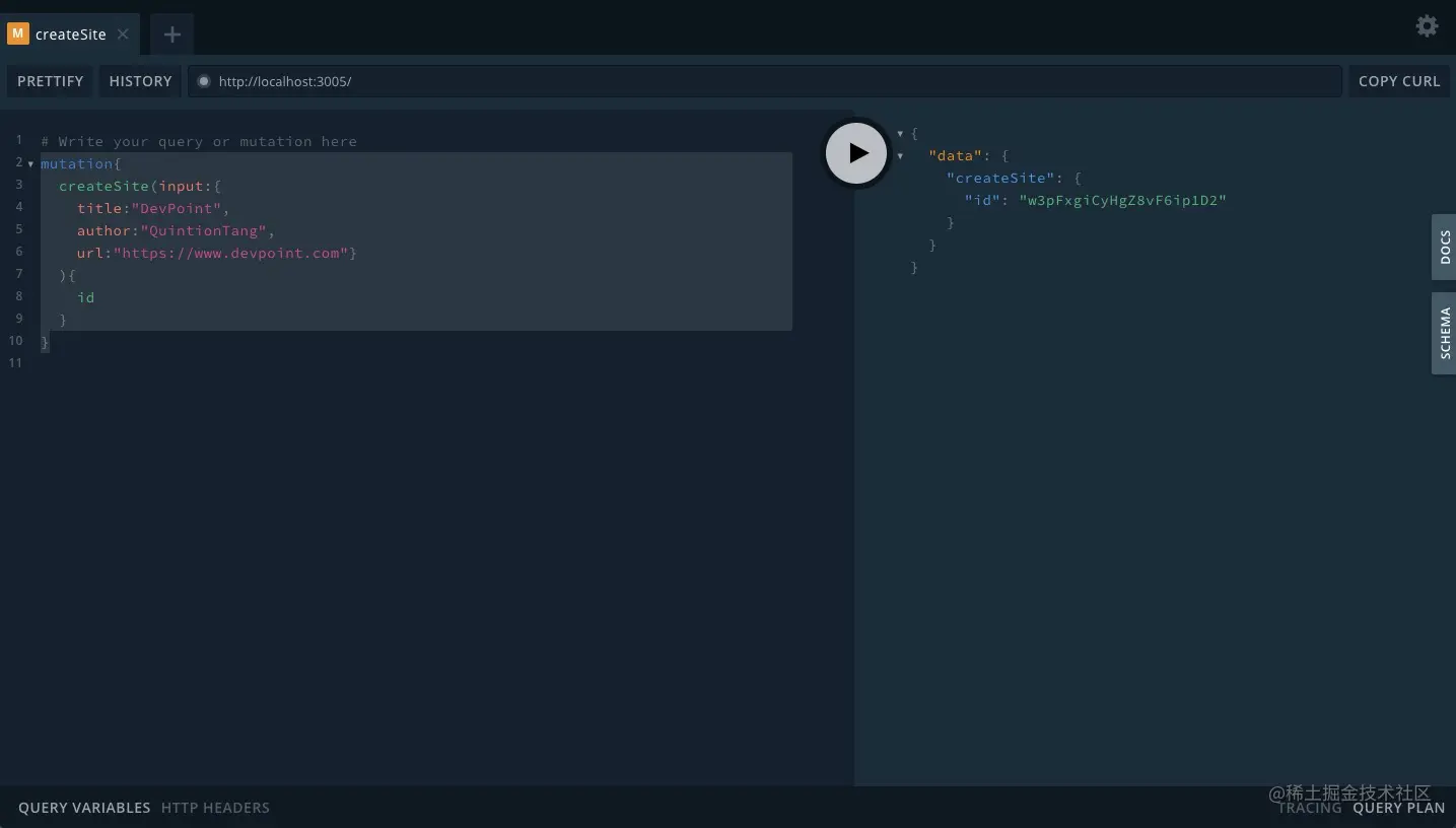 更改(Mutations)类似于post请求(尽管它们实际上只是查询的同步版本),它们允许将数据发送到服务器以执行插入、更新或者删除。下面是一个为新博客文章定义更改(Mutations)的例子,它接受输入类型PostInput并将新创建的文章作为post类型返回。
