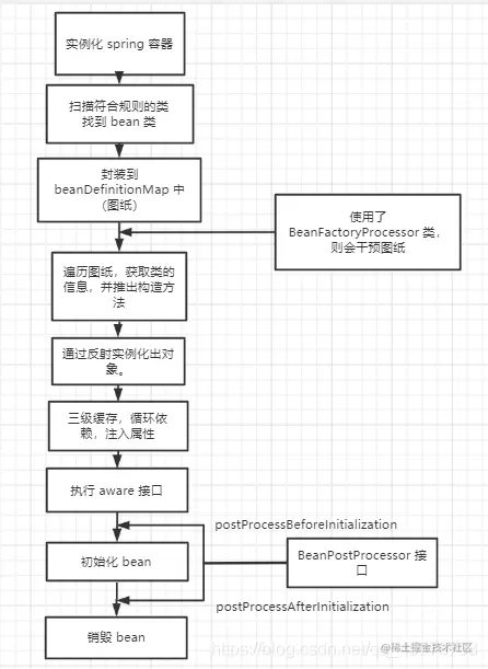 - 若 bean 关联了 BeanPostProcessor 接口,则还会调用 postProcessAfterInitialization 方法。