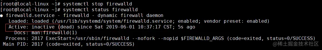 systemctl status firewalld