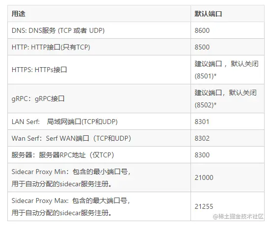 在运行Consul之前,应该确保可以访问以下绑定端口。