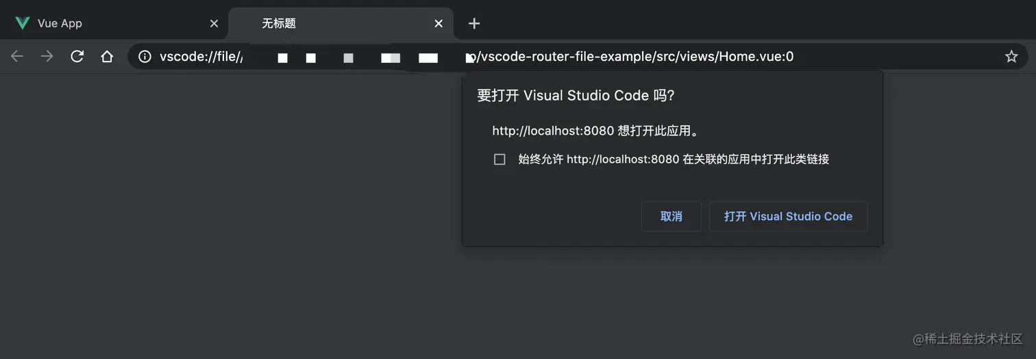 我发现目前真的可以通过vscode protocal 协议方式(vscode://file/文件路径:行号),去唤起vscode查看源文件了。这也就给了我去开发 vscode-router-file 的插件灵感。