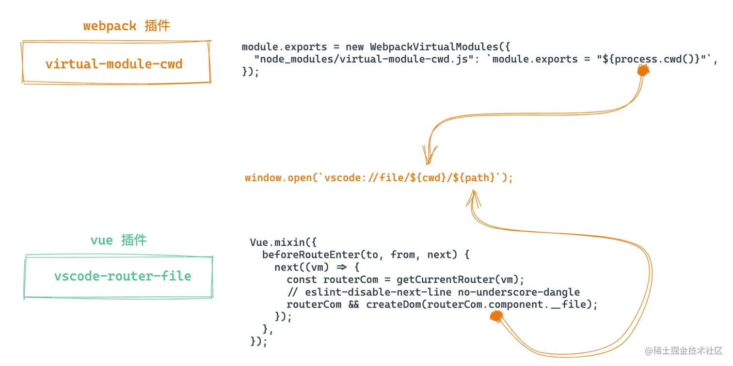 它是一个vue插件,我们可以在浏览器里通过双击的形式去唤起vscode打开当前路由源文件。