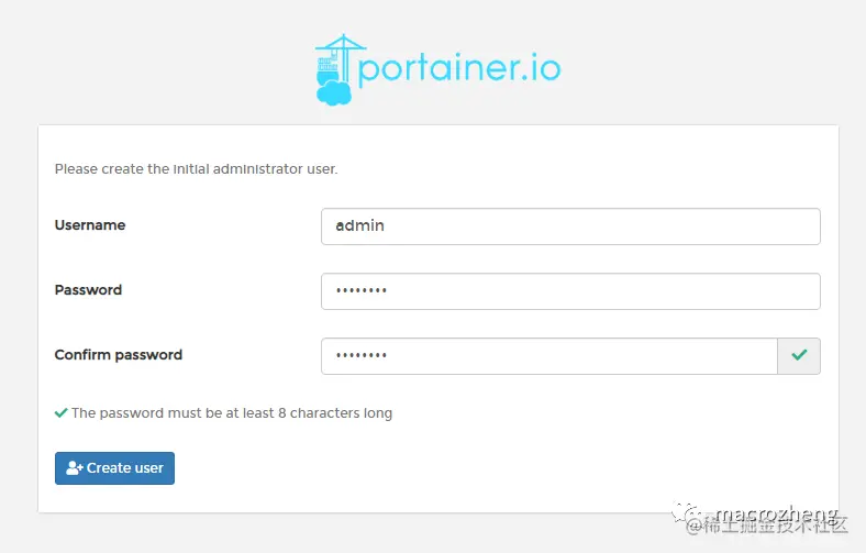 - 第一次登录的时候需要创建管理员账号,访问地址:http://192.168.5.78:9000/