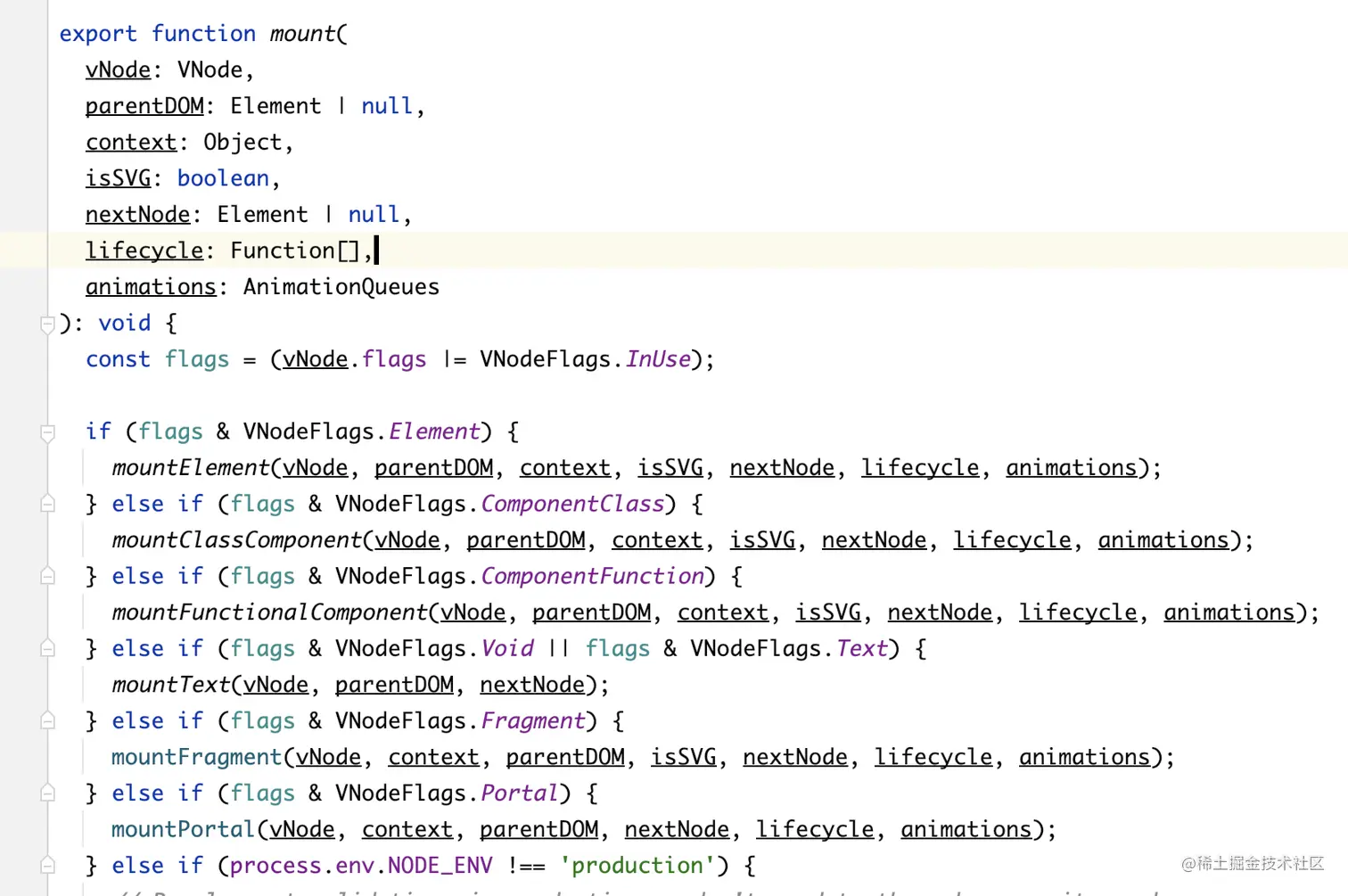 这里可以看见vNode.flags的作用,无需再关注节点本身的type,直接根据flags类型走不同的逻辑