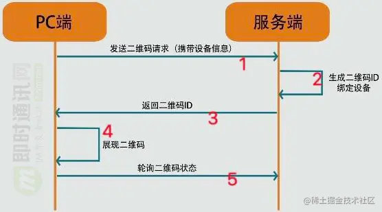 - 5)为了及时知道二维码的状态,客户端在展现二维码后,PC端不断的轮询服务端,比如每隔一秒就轮询一次,请求服务端告诉当前二维码的状态及相关信息。