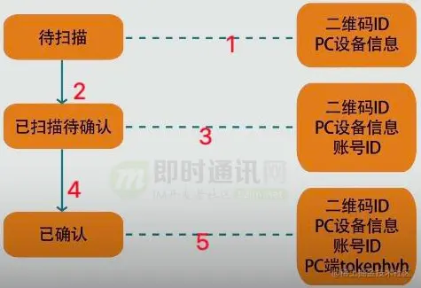 - 1)二维码的背后它一定存在一个唯一性的ID,当二维码生成时,这个ID也一起生成,并且绑定了PC端的设备信息;