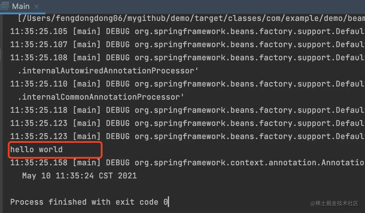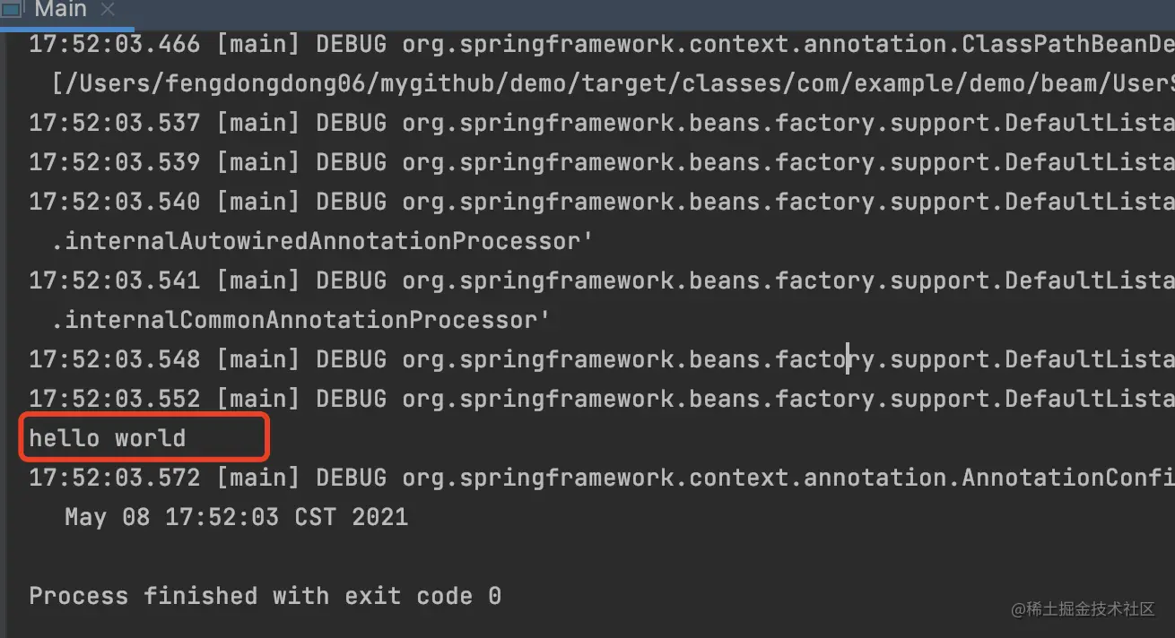 在Main测试环境下,我们依然使用userService进行bean的获取和测试。
