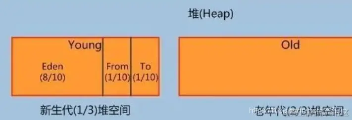 - 是被线程共享的一块内存区域,创建的对象和数组都保存在 Java 堆内存中,也是垃圾收集器进行垃圾收集的最重要的内存区域。由于现代 VM 采用分代收集算法, 因此 Java 堆从 GC 的角度还可以细分为: 新生代( Eden 区 、 From Survivor 区 和 To Survivor 区 )和老年代(jdk1.7)。