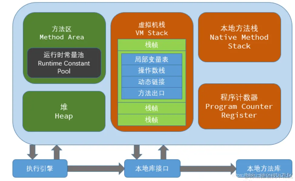 是描述java方法执行的内存模型,每个方法在执行的同时都会创建一个栈帧(Stack Frame)用于存储局部变量表、操作数栈、动态链接、方法出口等信息。每一个方法从调用直至执行完成的过程,就对应着一个栈帧在虚拟机栈中入栈到出栈的过程。