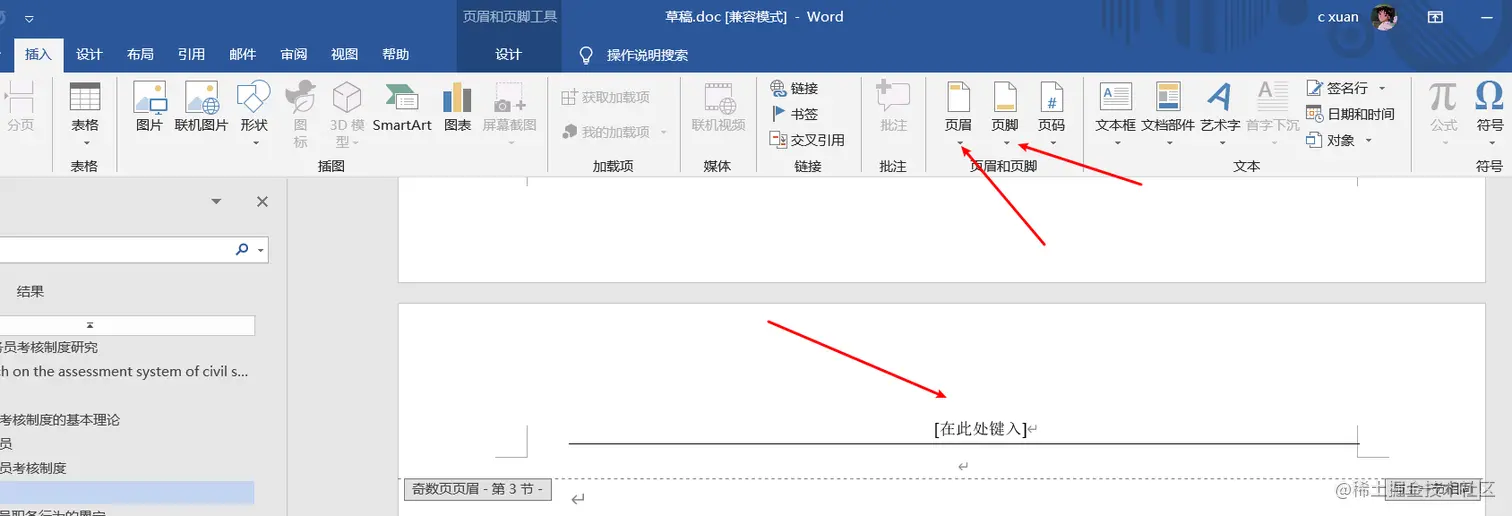 现在来设置正文,插入页眉、页脚,选择相应的格式即可: