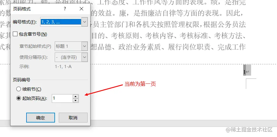 选择右击页码,可以设置起始页: