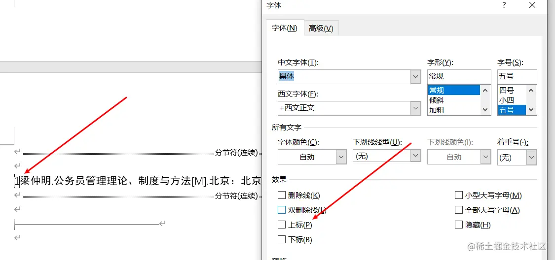 4.右击尾注 -> 文字,取消尾注上标;