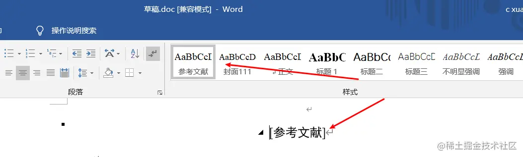 此处有一个小细节,必须要将参考文献也设置成标题才可以被检索到哦(目录会自动的将框中设置的标题索引)。