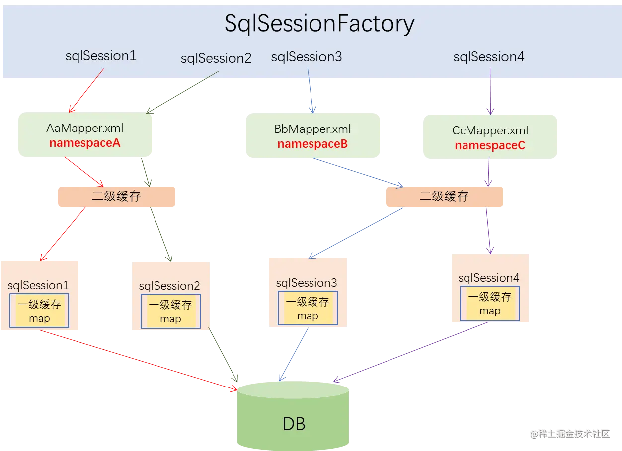 二级缓存也叫应用缓存,存在于 SqlSessionFactory 的生命周期中,缓存是以namespace为单位的,不同namespace下的操作互不影响。
