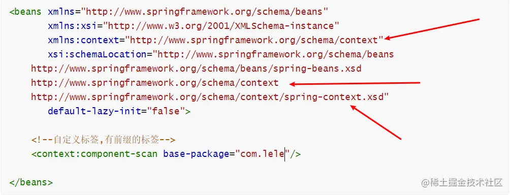 配置文件中除了有Spring自带的默认标签外,还会有一些扩展的自定义标签。如果要引入一个自定义的标签,需要引入其对应的XSD文件: