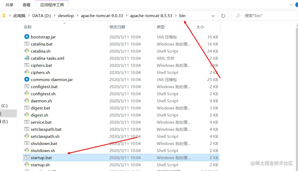 startup,主要是检查catalina.bat/sh 执行所需环境,并调用catalina.bat 批处理文件。
