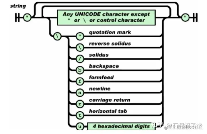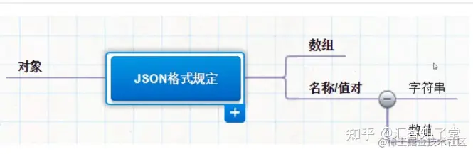 字符串(string)、数值(number)、对象(object)、数组(array), true、false、null。不能有这之外的类型,例如undefined、函数等。请看概念图。