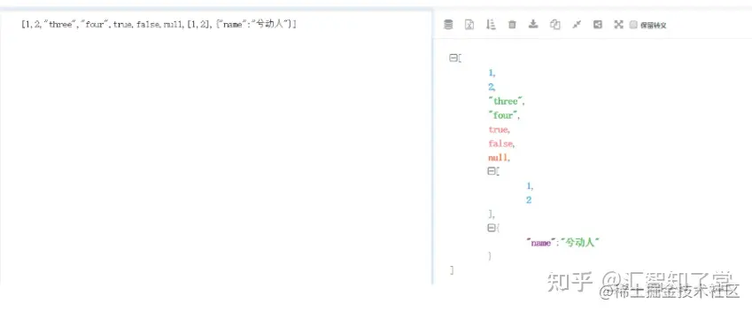 [1,2,"three","four",true,false,null,[1,2],{"name":"兮动人"}]