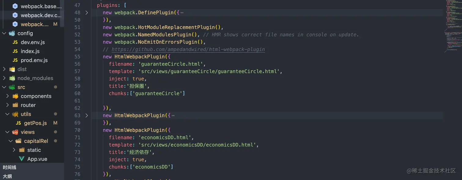 4.修改webpack.dev.conf.js devWebpackConfig下的plugin和上面一样有几个页面生成几个new HtmlWebpackPlugin对象并配置