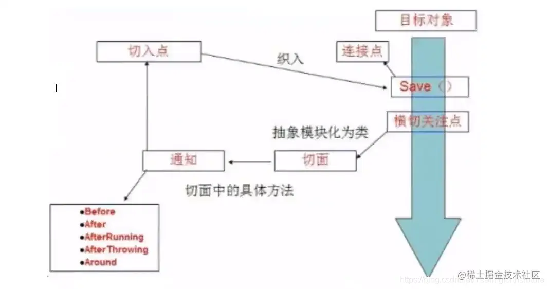 通知(Advice):切面必须要完成的工作。即,它是类中的一个方法。