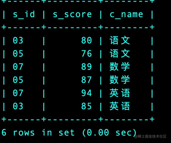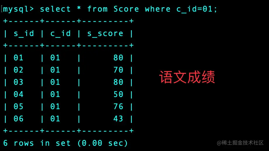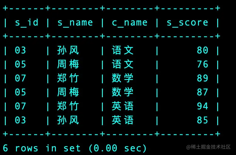 将上面的结果和成绩表连接起来: