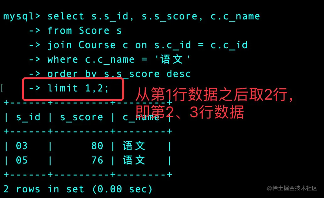limit 1,2; -- 取得第2、3名