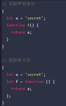 也就是说,花括号{}外的地方无法引用内部声明的函数